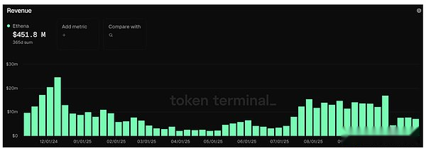 Although the ENA token currently functions primarily as a governance token, we believe there is a clear path for it to accumulate value.Ethena generated approximately $450 million in revenue over the past year, none of which is currently distributed to ENA token holders.