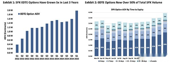 The global stock market is approximately US$100 trillion, almost 25 times the size of the entire crypto market, and the US stock market alone is US$60 trillion.Like the crypto market, there is a strong demand for leverage among stock market participants.This is evidenced by the explosive growth of zero-date-to-expiration (0DTE) options—which are primarily traded by retail investors and account for more than 50% of S&P 500 Index (SPX) options trading volume.Retail investors clearly want leveraged exposure to the price movements of underlying assets, and perpetual contracts on tokenized stocks can directly address this need.