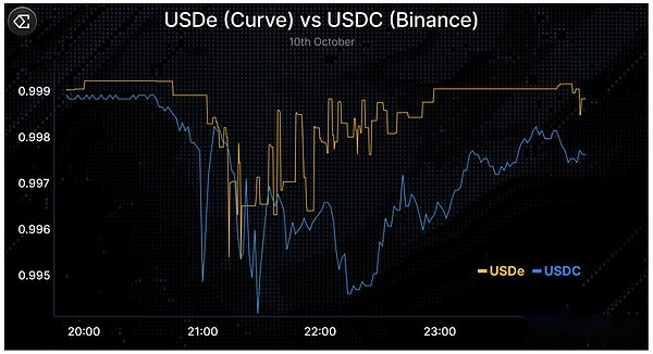 On October 11, 2025, the crypto market experienced an extreme deleveraging event—approximately $20 billion in positions were liquidated within a few hours, and the open interest volume of major centralized exchanges and decentralized exchanges shrank significantly.In the process, the trading price of USDe on Binance fell to about $0.65 due to the design of Binance’s oracle machine (which was later criticized).However, on more liquid on-chain platforms such as Curve, the price of USDe remains close to parity (see chart below) and the redemption function is functioning normally – suggesting that this is a price dislocation on a specific platform rather than a systemic de-anchoring.Guy’s tweet on the X platform explains the events of October 11 in detail and is worth reading.