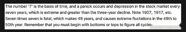 Avec 42 mois équivalant à environ 3,5 ans, ce cycle est significatif : il se situe exactement au milieu du cycle de 7 ans de Gann.Voici ce que Gann a dit à propos du cycle de 7 ans :