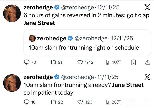 Zerohedge l’a souligné à plusieurs reprises et estime que Jane Street est la personne la plus probable dans les coulisses.
