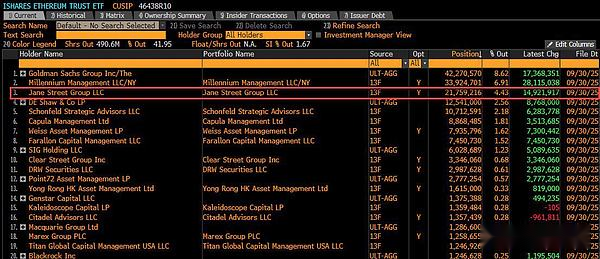 Actuellement, Jane Street détient l’ETF BlackRock IBIT d’une valeur de 2,5 milliards de dollars, ce qui en fait l’un des cinq principaux titres d’IBIT.