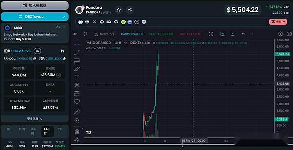 D’après les données de Dextool, comme le poste, le prix du jeton Pandora était de 5 465 $ US, la liquidité de la piscine était d’environ 15 millions de dollars, le volume de transaction de 24 heures était de 27 millions de dollars américains et la valeur marchande était 54 millions de dollars américains.
