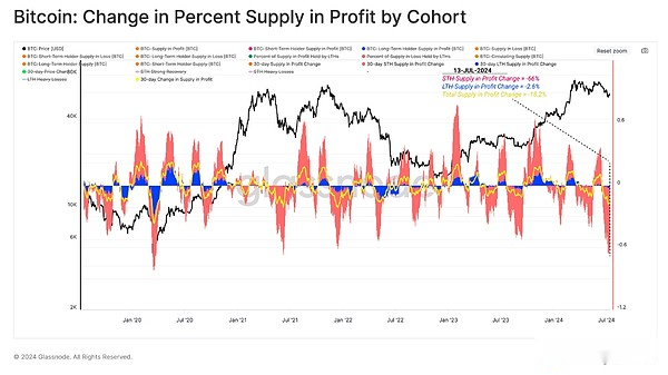 Au cours des 30 derniers jours, la rentabilité de la population de titulaires à court terme (STH) a fortement baissé, l’offre dépassant de -66% en pertes non réalisées.C’est l’une des plus grandes baisses de la rentabilité de STH jamais enregistrée.