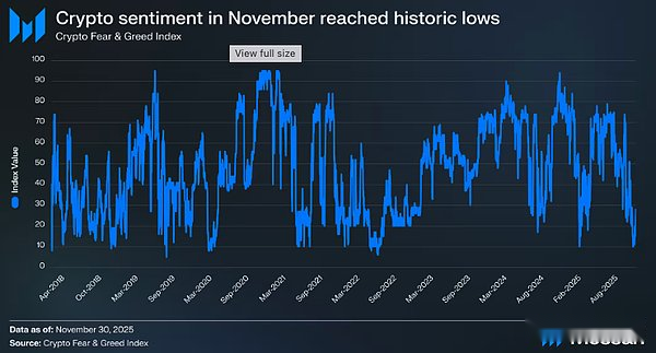 Au contraire, les crypto-monnaies gagnent en reconnaissance et en intégration aux plus hauts niveaux des institutions mondiales. La Securities and Exchange Commission (SEC) des États-Unis a déclaré publiquement qu’elle s’attend à ce que tous les marchés américains soient en chaîne d’ici deux ans ; la circulation des pièces stables a atteint un niveau record ;et le récit de mise en œuvre d’applications « un jour dans le futur » que nous avons mentionné à plusieurs reprises depuis dix ans est enfin devenu une réalité – cependant, le sentiment de l’industrie n’a presque jamais été aussi mauvais.Presque toutes les deux semaines, une publication tendance apparaît sur la plateforme sociale