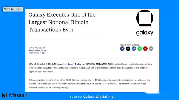 Il existe de nombreuses preuves anecdotiques et en chaîne selon lesquelles certains détenteurs en sommeil depuis longtemps ont profité de l’occasion pour réduire leurs avoirs.Plus tôt cette année, Galaxy Digital a facilité la vente de 80 000 Bitcoins par un « investisseur de l’ère Satoshi » – une seule transaction représentant 0,38 % de l’offre totale de Bitcoin et provenant d’une seule entité.