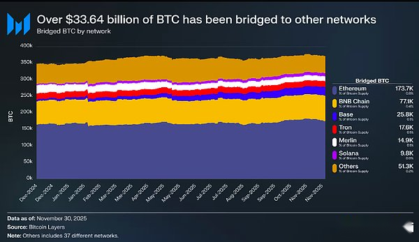 Bien que certains partisans estiment que cette conception réduit la surface d’attaque du réseau et préserve la simplicité du Bitcoin en tant que monnaie, il est indéniable qu’un nombre considérable de détenteurs de Bitcoin espèrent utiliser Bitcoin dans un environnement programmable.Au moment d’écrire ces lignes, 370 300 Bitcoins (d’une valeur d’environ 33,64 milliards de dollars) ont été reliés entre chaînes à d’autres réseaux.Parmi eux, 365 000 Bitcoins (représentant 99 % de tous les Bitcoins inter-chaînes) ont été inter-chaînes via des solutions de conservation ou des solutions introduisant des hypothèses de confiance.En d’autres termes, pour utiliser Bitcoin dans un écosystème plus riche en fonctionnalités, les utilisateurs doivent réintroduire les risques de confiance que Bitcoin a été initialement conçu pour éliminer.
