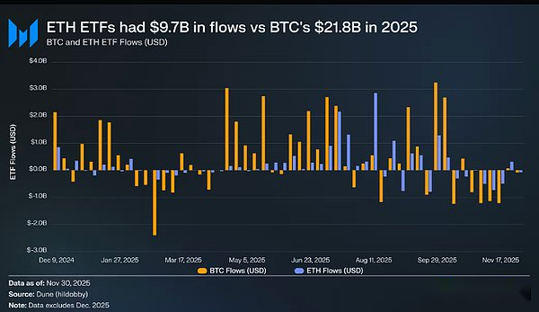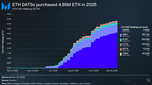 4. L’ETH reste l’actif le plus controversé.Les inquiétudes concernant la capture de valeur ne se sont pas encore complètement apaisées, mais les performances du second semestre 2025 prouvent que le marché est prêt à le traiter comme une crypto-monnaie au même titre que Bitcoin.Si le marché haussier des crypto-monnaies revient en 2026, la trésorerie des actifs numériques (DAT) Ethereum pourrait inaugurer un « deuxième printemps ».