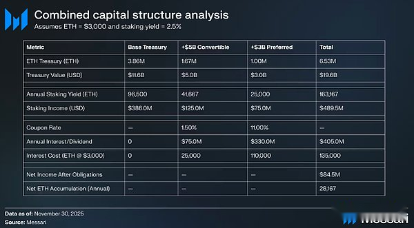 Par exemple, une trésorerie d’actifs numériques comme BitMine peut lever des fonds en émettant une combinaison d’obligations convertibles à faible taux d’intérêt et d’actions privilégiées à haut rendement, en utilisant les fonds levés directement pour acheter de l’Ethereum, et en même temps engager ces Ethereums pour obtenir un revenu de gage stable.Dans des hypothèses raisonnables, les revenus des gages peuvent couvrir en partie les intérêts des obligations et les paiements de dividendes sur les actions privilégiées, permettant au Trésor de continuer à augmenter ses avoirs en Ethereum grâce à un effet de levier accru lorsque l’environnement de marché est favorable.En supposant que le marché haussier du Bitcoin revienne en 2026, cette « deuxième courbe de croissance » de la trésorerie des actifs numériques d’Ethereum deviendra une force importante soutenant les propriétés à bêta élevé d’Ethereum par rapport à Bitcoin.