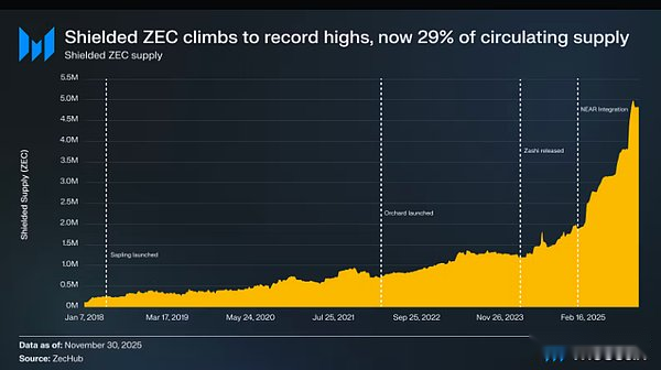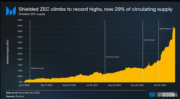 La demande du marché en matière de confidentialité a toujours existé. Le problème précédent de ZEC était qu’elle n’avait pas réussi à abaisser le seuil d’utilisation par les utilisateurs.Pendant des années, le protocole Zcash a été confronté à une utilisation élevée de la mémoire, à de longs délais d’attestation et à des opérations fastidieuses des clients de bureau, ce qui rendait les transactions privées lentes et difficiles à exécuter pour la plupart des utilisateurs.Ces dernières années, une série d’avancées en matière d’infrastructure ont systématiquement résolu ces problèmes et ouvert la voie à l’adoption par les utilisateurs de ZEC.