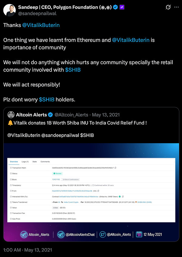 He said on Twitter that he could not sit idly by the crisis.He created an encrypted multi-signature wallet to receive donations, which is expected to raise $5 million in total.Within a few days, donations reached $10 million.Ethereum founder Vitalik Butling then donated $1 billion worth of Shiba Inu coins.