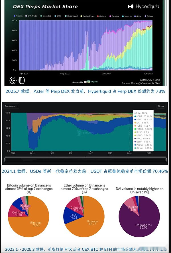 But the market share of Binance and USDT, and even Hyperliquid’s share of Perp DEX, roughly peaked at around 70%, and then more market action was needed to stabilize the current position.