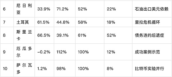 Hanji führte eine achtdimensionale Bewertung von mehr als 200 Zentralbanken auf der ganzen Welt durch (Inflationsrate, Deckungsrate der Währungsreserven, Kapitalfluchtindex, Dollarisierungsrate der privaten Nutzung, Anteil der IWF-Schulden, politische Stabilität, regionaler Demonstrationseffekt, Trumps persönliche Beziehung) und filterte 50 Länder mit hohem Potenzial heraus.Die Top Ten lauten wie folgt (Datenstand November 2025):