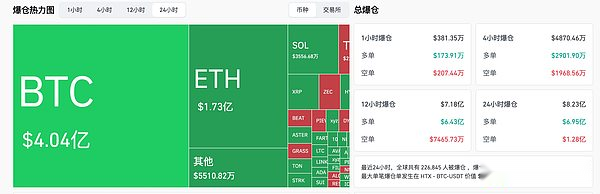 Cryptocurrencies fell sharply again in the early hours of this morning and rebounded slightly in the morning.Bitcoin fell below US$87,000 for the first time in seven months, briefly touching US$86,100, with a drop of more than 3% in 24 hours; Ethereum briefly fell below US$2,800, once touching US$2,790, with a 24-hour drop of more than 3.3%.Other cryptocurrencies such as Solana and BNB all experienced significant declines.Coinglass data shows that in the past 24 hours, the entire network has been liquidated to US$823 million, and more than 226,000 people have been liquidated. Among them, long orders have been liquidated for US$695 million, short orders have been liquidated for US$128 million, BTC has been liquidated for US$404 million, ETH has been liquidated for US$173 million, and Solana has been liquidated for US$35,566,800.