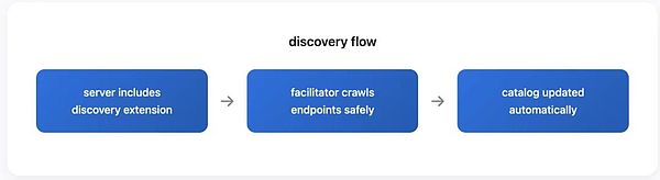 Discovery-Erweiterungen ermöglichen es Diensten, strukturierte Metadaten für die automatische Indizierung verfügbar zu machen.ModeratorEndpunkte, die das x402-Protokoll unterstützen, können gescrapt werden, um einen aktuellen Preiskatalog ohne manuelle Übermittlung zu verwalten.
