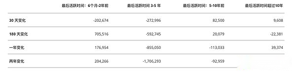 Among the groups with longer holding times (i.e. investors who have held coins for more than 5 years), the token circulation rate is still lower relative to other groups.In contrast,The largest trading volume group is Bitcoin holders whose last transaction was 3-5 years ago, the token circulation rate in this range continues to decline in each study period.Over the past two years, the supply in this range has dropped by 32% as a large number of Bitcoins have been moved to new addresses.Considering that these Bitcoins were likely accumulated during the last cycle downturn, their holders appear to be more interested in cyclical trading than long-term investing.