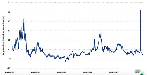 In the past, long-term declines in Bitcoin prices have often been accompanied by bursts of speculation, with funding rates for perpetual contracts averaging as high as 40% on some days.We have not seen such a dramatic increase in funding rates since March 2024.However, it is important to note that projects like Ethena, as well as some veteran traders, have accumulated large long positions in spot cryptocurrencies and short positions in perpetual contracts.For Ethena alone, its total value locked (TVL) reached $14 billion in October 2025, but has since plummeted to $8.3 billion.These huge basis trades can artificially drive funding rates so low that they are no longer effective.
