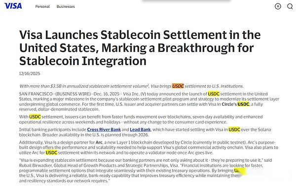 偶然ですが、マスターカードも昨日、中東でのステーブルコイン決済をサポートすると正式に発表しました。そしてビザは今回はアメリカにあります。私が以前に予測したように、米国でステーブルコイン天才法が可決された後、業界全体が狂ったように加速していることがわかります。