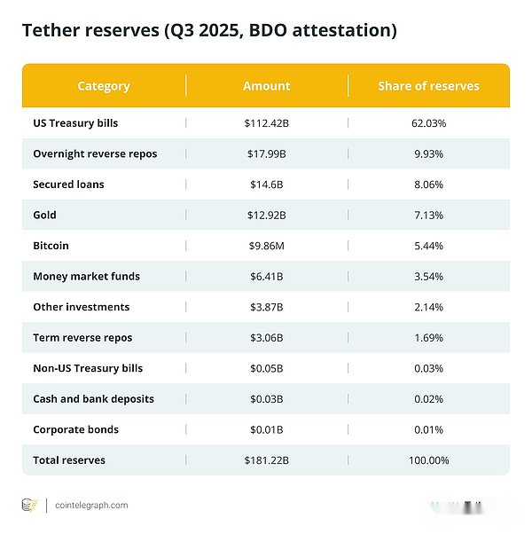 Tether no longer looks like a pure stablecoin company.Its balance sheet is littered with short-term U.S. Treasuries, reverse repurchase agreements, gold and even Bitcoin.It is able to mint and redeem U.S. dollars at scale, and can freeze related addresses at the request of law enforcement.
