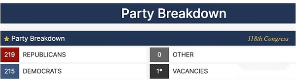 Current distribution of political parties in the U.S. House of Representatives.Source: U.S. House of Representatives