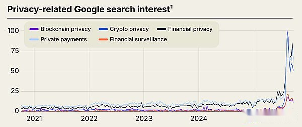 Zcash の 700% 近い急騰は、暗号通貨分野におけるより深い文化的変化を反映しているようです。a16z の 2025 年の暗号業界現状レポートで強調されているように、Google でのプライバシー関連キーワードの検索の注目度はここ数カ月で劇的に増加しています。